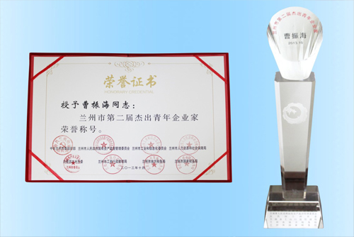 2013年11月8日,為表彰蘭州市杰出(優(yōu)秀)青年企業(yè)家在我市經(jīng)濟(jì)發(fā)展中所做的突出貢獻(xiàn),市委組織部、市工信委、團(tuán)市委等8家單位聯(lián)合授予曹振海等10名同志為“蘭州市第二屆杰出青年企業(yè)家”(同時授予另10名同志為“蘭州市第二屆優(yōu)秀青年企業(yè)家”)榮譽(yù)稱號。